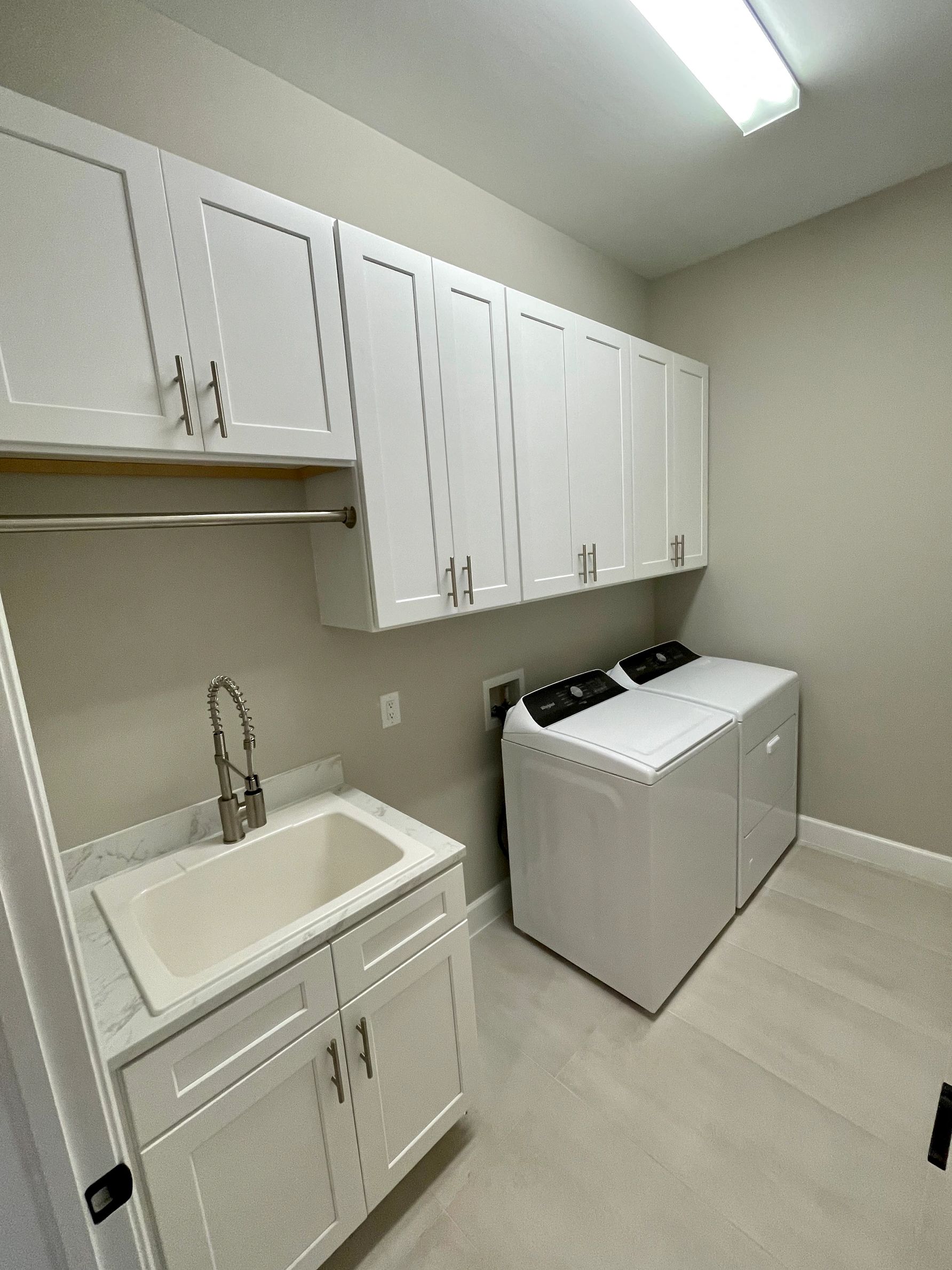 Imagine wowing your guests with your laundry room! A laundry room remodel can greatly improve the functionality and aesthetic appeal of this often-overlooked space. We use cabinets made from solid birch hardwood with thick, sturdy panels and shelving.